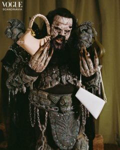 As lendas do rock finlandês LORDI fizeram sua estreia como modelo de alta costura na última edição de março-abril da Vogue Escandinávia, com um toque ético: a banda solicitou que todas as bolsas do editorial, filmadas localmente em Helsinque, fossem confeccionadas inteiramente com materiais veganos.