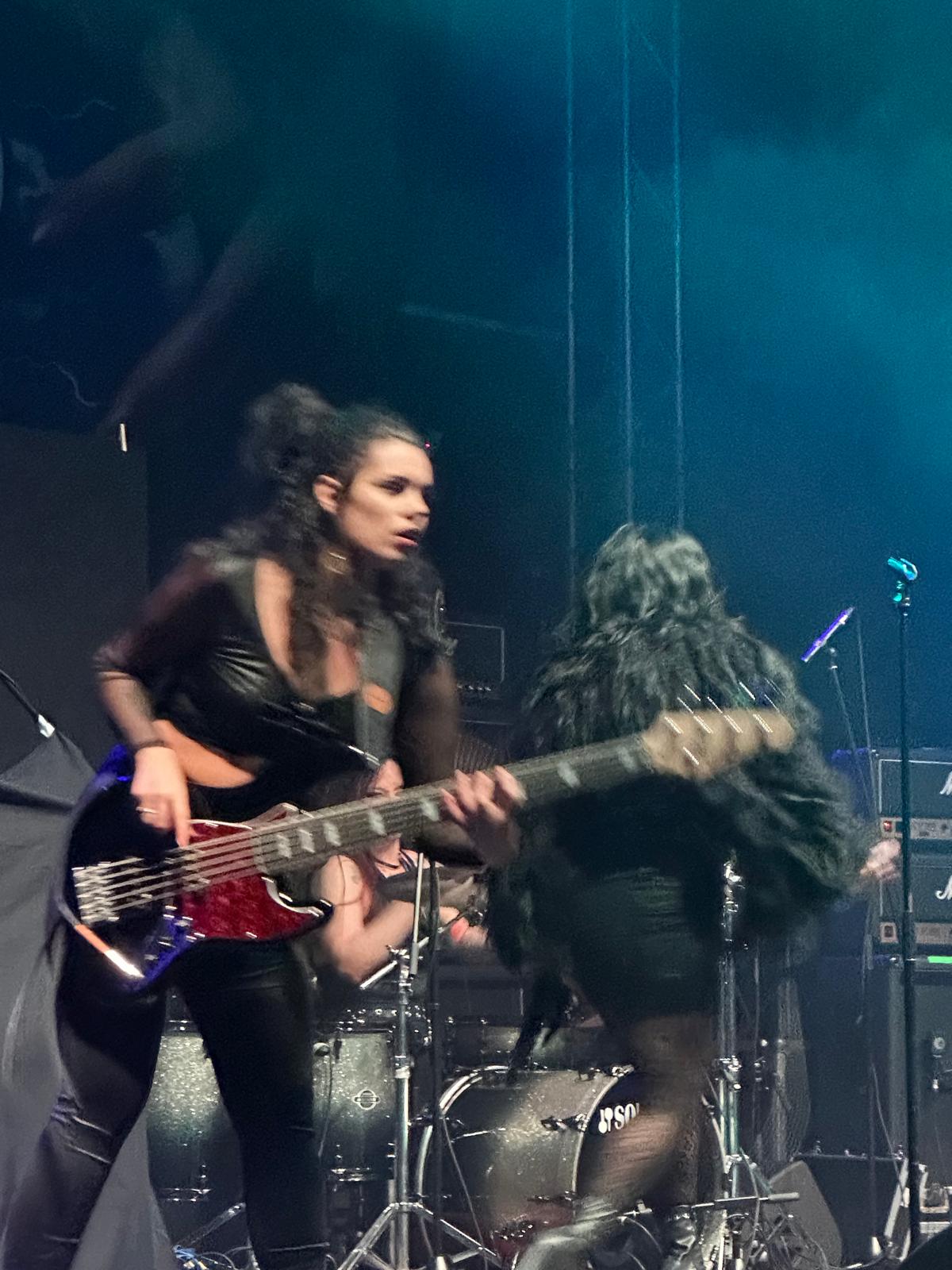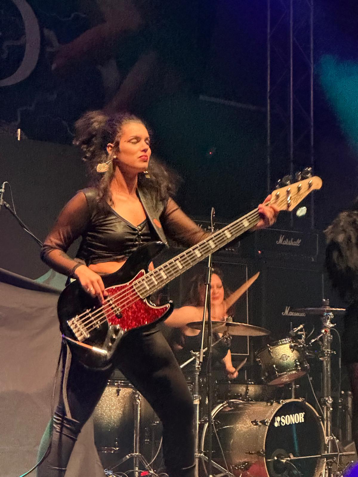 Rafaela (baixo): No baixo, sigo Steve Harris, Cliff Burton, Metallica e Rush. Essas referências ajudam a criar linhas sólidas e consistentes.