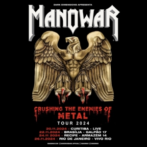 Continuando com a vitoriosa turnê Crushing The Enemies Of Metal, os ícones do Heavy Metal e membros fundadores dessa instituição do Heavy Metal mundial, Eric Adams (vocal) e Joey DeMaio (baixo), junto com Dave Chedrick (bateria) e Michael Angelo Batio (guitarra), apresentarão seus grandes clássicos de mais de 4 décadas de carreira em 4 cidades do país. Os ingressos já estão à venda através das plataformas ShowPass (RJ e Curitiba) e Bilheto (Recife e Brasília), e todos estão quase que esgotados!
