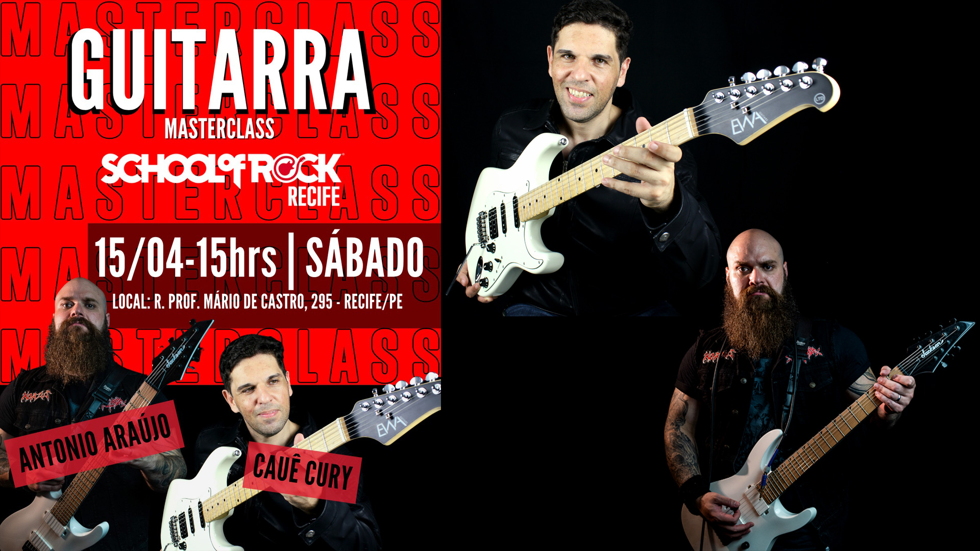 A School of Rock de Recife (Unidade Boa Viagem) receberá uma masterclass ministrada pelos guitarristas Antonio Araújo e Cauê Cury, se unirão para discutir o mercado e o lado business da música e do músico moderno. O foco, claro, será um dos instrumentos mais tocados no mundo: a guitarra!