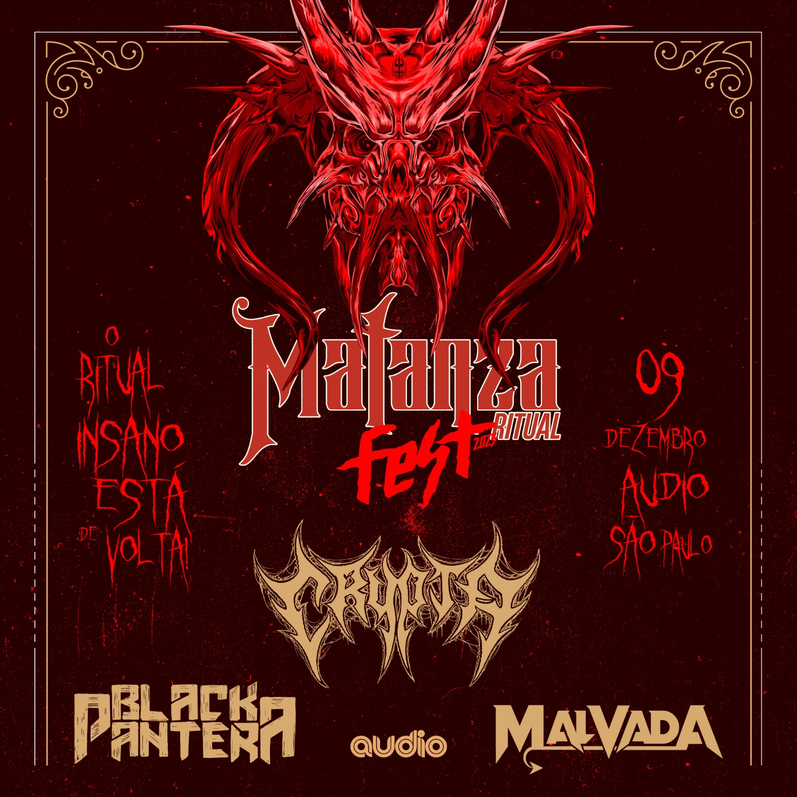 O line up contará com Matanza Ritual, Crypta, Black Pantera e Malvada e a união dessas bandas promete ser um verdadeiro ritual insano!