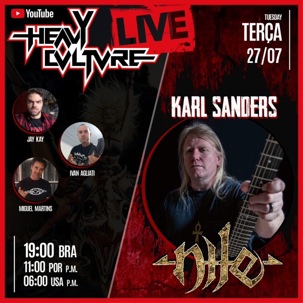Finalizando o mês de julho, o HEAVY CULTURE receberá, no dia 27/07, o guitarrista Karl Sanders do Nile, e no dia 30/07 a equipe receberá a banda Headhunter D.C. com Sérgio Baloff (vocal) e Paulo Lisboa (ex-guitarrista) fazendo um raio X do álbum “Born… Suffer… Die”, que completa 30 anos.