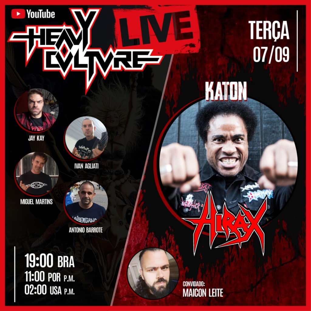 A agenda de setembro do HEAVY CULTURE segue com Moyses Kolesne (Krisiun) no especial Heavy Brasilis, em 03/09 às 19h. Na sequência, Katon De Penna (Hirax) no dia 07/09 às 19h, e o baterista Mike Terrana em 14/09 às 17h. A última rodada será com Tim Baker (Cirith Ungol) em 21/09 às 21h e Fernanda Lira (Crypta) em 28/09 às 19h.
