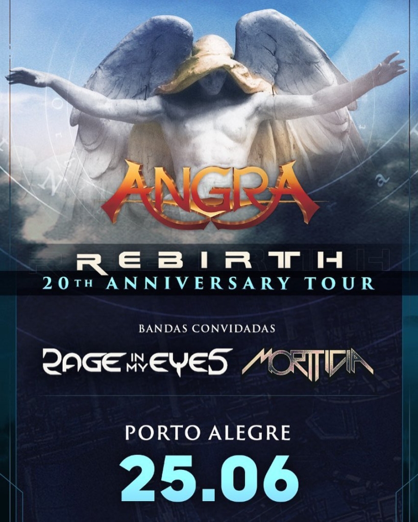 Mais uma data é agendada para a divulgação do EP “A Light in the Black” da banda gaúcha MORTTICIA, desta vez como banda de abertura do show do Angra em Porto Alegre, no dia 25 de junho, sábado. O show faz parte da “Rebirth 20th Anniversary”, quando a banda paulistana comemorará os 20 anos do clássico “Rebirth”, lançado em 2001, e contará ainda com os conterrâneos do Rage In My Eyes, que divulga o EP “Spiral”. O show será realizado no Opinião (Rua José do Patrocínio, 834), com abertura da casa às 18h. Lucas Fialho Zawacki (vocal), Lúcio Brenner e Vicente Telles (guitarras), Guilherme Wiersbicki (baixo) e Anderson Dias (bateria) declaram: “Fazer a abertura de uma banda que além de inspiração é também uma banda que esteve presente durante uma boa parte da nossa vida mostra que estamos fazendo no trabalho de maneira madura e correta”.