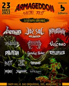 Os ingressos para o Armageddon Metal Fest seguem a venda pelo link: https://www.bilheto.com.br/evento/209/Armageddon_Metal_Fest.