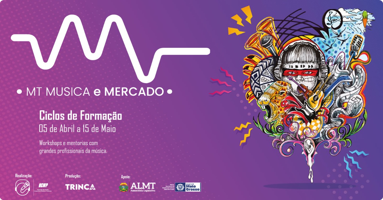 O projeto MT Música e Mercado consiste em ciclos de formação que começa em 5 de abril até 15 de maio, visando a qualificação dos músicos e todos os profissionais que lidam com o seguimento musical, através de mentorias e workshops. O MT Música e Mercado é um projeto realizado pela Associação dos Artistas, Compositores, Músicos e Produtores, produzido pela TRINCA e conta com o fomento do Governo do Estado de Mato Grosso através da Assembleia Legislativa e Secretaria de Estado de Cultura, Esporte e Lazer – SECEL. Atualmente o projeto tem trabalhado com mentoria para cinco grandes produtores da cena musical brasileira: Ciça Pereira, Anita Carvalho, Marcelo Damaso, Carolina Barros e Roberta Martinelli. A mentorias serão com bandas e artistas que atuam no cenário da música e que querem dar um upgrade na carreira, as vagas são limitadas e a seleção ocorrerá com base no portfólio.