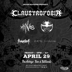 Claustrofobia juntou forças com amigos de Mynas junto com Pariah Was One e Annelida para uma noite épica no Backstage Bar & Billiards em Las Vegas no dia 29 de abril.
