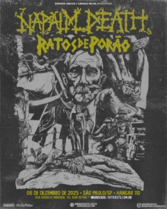 Ingressos: https://101tickets.com.br/events/details/Napalm-Death-e-Ratos-de-Porao-em-Sao-Paulo