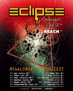 Os gigantes suecos do Hard Rock, Eclipse, estão finalmente de volta à estrada com o anúncio de sua novíssima Megalomanium Tour 2025. Uma jornada que os levará pela Alemanha, Áustria, República Tcheca, Bélgica, Suíça e Itália, esta turnê é mais do que apenas uma série de shows – é uma celebração de tudo o que torna o Eclipse uma das bandas de Rock mais eletrizantes da atualidade.