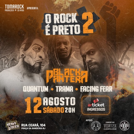 No último sábado, dia doze (12) de Agosto, o Heavy Beer Bar mais uma vez abriu as portas para o pessoal da Tomarock Produções trazer à vida a segunda edição do Festival O Rock É Preto, estivemos na primeira edição desse importante festival (cobertura aqui) e nesse sábado, a Tomarock aumentou e muito o rolé desse belo evento e colocou como headliner a banda que mais cresce no Brasil, atualmente, a melhor banda em palco atuante, os mineiros do Black Pantera, que teve a abertura nessa edição do Facing Fear, Trama e da Quantum.