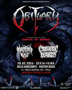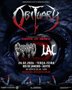 A banda norte-americana Obituary, um dos principais nomes do death metal clássico, retorna ao Brasil em fevereiro para uma série de shows em celebração aos 35 anos de ‘Cause of Death’, segundo álbum de estúdio e um dos registros mais influentes da história do death metal.