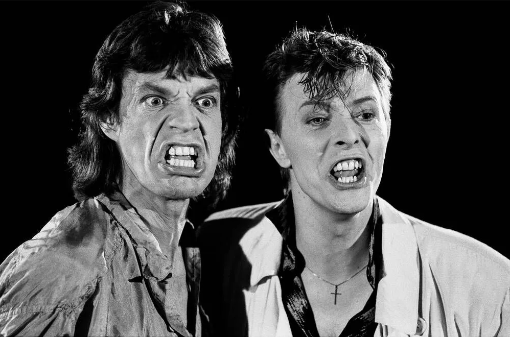 Os anos 80 também foram marcados por parcerias lendárias que entraram para a história da música: a icônica “Under Pressure”, onde em 1981, Bowie decidiu visitar o Queen em seu estúdio de gravação na Suíça. O que começou como uma simples “jam session” entre amigos evoluiu rapidamente para um dueto vocal histórico entre David Bowie e Freddie Mercury. “Foi um verdadeiro prazer trabalhar com ele, tem um tremendo talento”, declarou Mercury na época. A música, que trata da pressão social e da necessidade de amor, tornou-se o terceiro single de Bowie a atingir o topo das paradas britânicas e é, até hoje, considerada uma das melhores colaborações da história do rock. Também o dueto energético com Mick Jagger para o projeto beneficente Live Aid em “Dancing in the Street”.