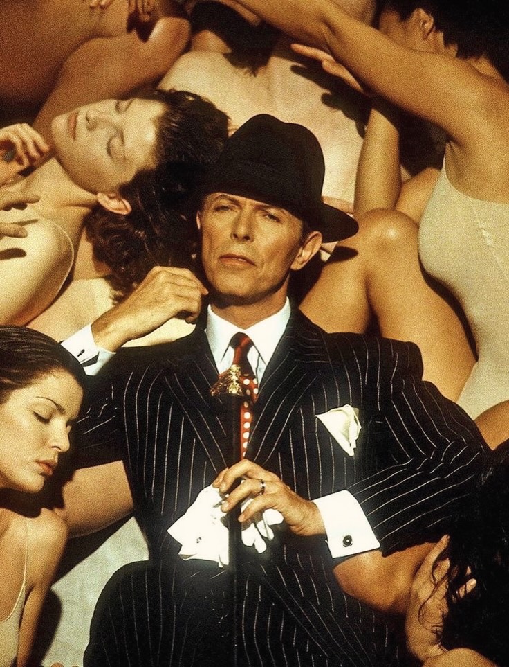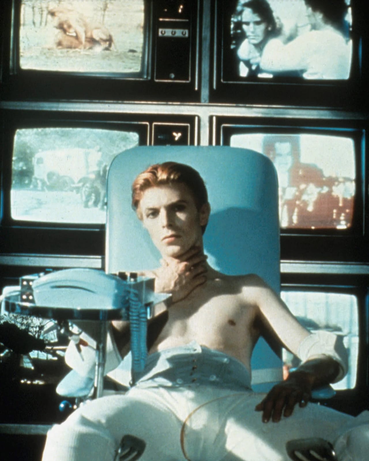 Posteriormente, veio o álbum Station to Station (1976), disco que apresentou oficialmente a persona “Thin White Duke” inspirado visualmente no personagem “Thomas Jerome Newton” que Bowie interpreta no filme “The Man Who Fell to Earth”. Visualmente, o personagem era definido por uma elegância minimalista: cabelos loiros penteados para trás, pele pálida, camisa branca, colete ou jaqueta escura e postura rígida, quase aristocrática. Bowie descreveu o Thin White Duke como um homem emocionalmente distante, “sem empatia”, que parecia se mover pelo mundo como um observador desencantado, preso a rotinas obsessivas e a uma visão fragmentada da realidade.