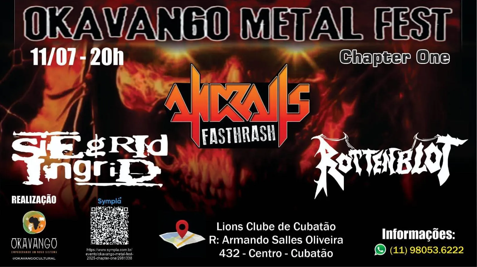 Ingressos à venda via Sympla em: https://www.sympla.com.br/evento/okavango-metal-fest-2025-chapter-one/2981338