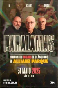O trio original conta também com os músicos João Fera (teclados), Monteiro Jr. (saxofone) e Bidu Cordeiro (trombone). Eleitos um dos melhores shows do Lollapalooza Brasil 2023, os Paralamas continuam relevantes e inspiradores, com canções que abordam questões sociais, amorosas e políticas e são reconhecidos não apenas por sua qualidade musical, mas também por sua capacidade de se reinventar e se conectar com novas gerações. A banda também se apresenta no dia 7 de junho de 2025, na Farmasi Arena, no Rio de Janeiro; 14 de junho de 2025, no BeFly Hall, em Belo Horizonte; e em 28 de junho de 2025, em Porto Alegre, no Auditório Araújo Vianna, em Porto Alegre.