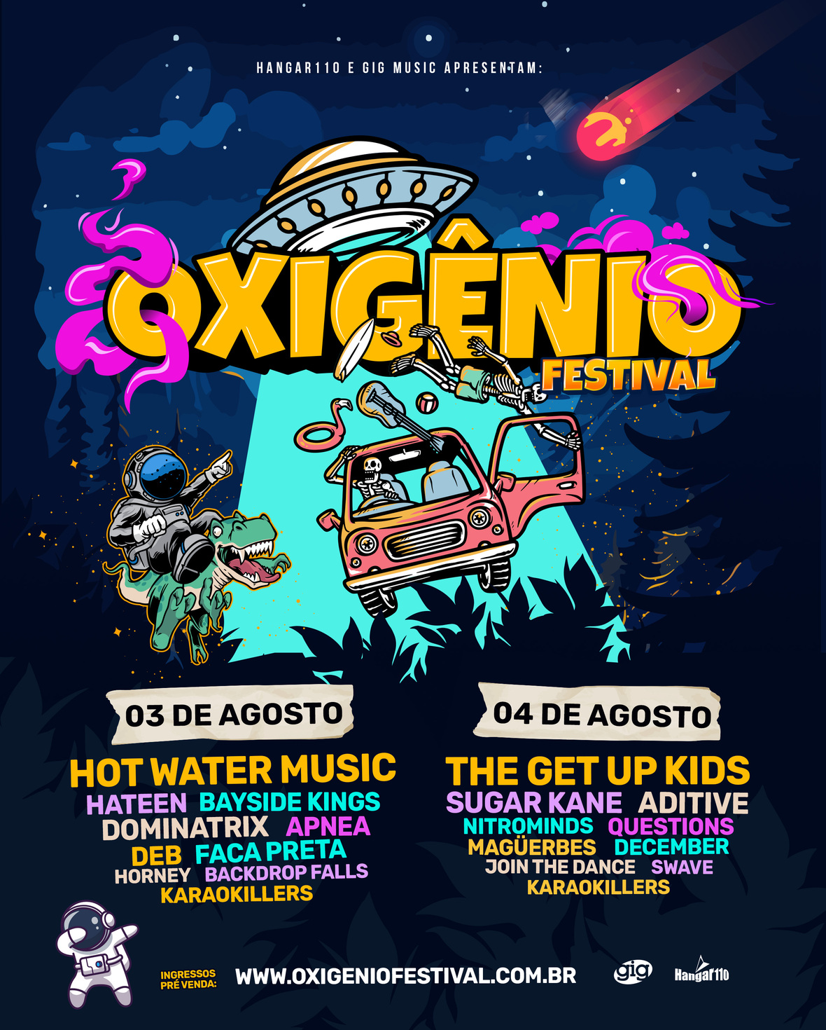 Esta, que é a nona edição do Oxigênio Festival, é uma realização da Gig Music e Hangar 110.