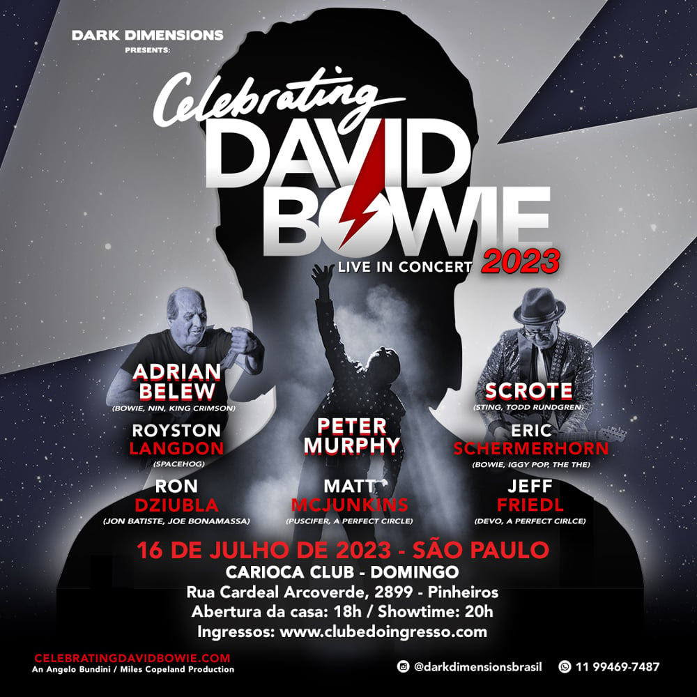 Ao lado de Adrian Belew (guitarra/David Bowie, King Crimson, NIN) e dos renomados músicos Royston Langdon (baixo/Spacehog), Matt McJunkins (baixo/A Perfect Circle), Scrote (guitarra/Sting, Todd Rundgren), Jeff Friedl (bateria/Devo, A Perfect Circle), Ron Dziubla (saxofone/Jon Batiste, Joe Bonamassa) e Eric Schermerhorn (guitarra/David Bowie, Iggy Pop), Peter Murphy apresentará no Carioca Club Pinheiros, em São Paulo, dia 16 de julho, interpretações dos maiores sucessos de David Bowie com ênfase especial na sua era proto-punk de Ziggy Stardust, os álbuns da trilogia de Berlim (“Low”, “Heroes” e “Lodger”) e seus últimos anos de parceria com o líder do NIN, Trent Reznor.