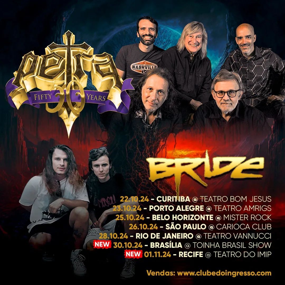 A turnê Petra & Bride será uma oportunidade única para que os fãs de todo o país possam testemunhar esse encontro único de lendas do rock cristão, e irá acontecer em sete cidades brasileiras, sendo elas:
