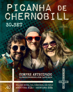Picanha de Chernobill, trio de rock formado por Matheus Mendes (vocal e baixo), Chico Rigo (guitarra e backing vocals) e Fernando Salsa (bateria e percussão), promete agitar o palco do La Iglesia no próximo dia 30 setembro (sábado) com novidades em primeira mão do álbum “Pindorama”.