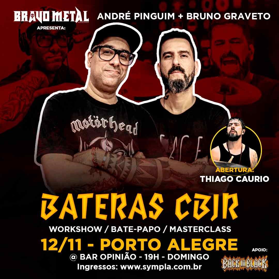 Está programado para o dia 12 de novembro a vinda do BATERAS CBJR para a capital gaúcha, com a Bravo Metal Mgmt trazendo os bateristas do CHARLIE BROWN JR. para um evento que reunirá workshow, masterclass e bate-papo na tradicional casa de shows Opinião. Os músicos Pinguim e Graveto, que integraram a lendária banda brasileira dos saudosos Chorão e Champignon, em diferentes fases, prometem um domingo especial não só para os fãs da banda, mas também para aficionados por bateria em geral, apresentando músicas do CHARLIE BROWN JR., mostrando suas técnicas e segredos em estúdio e nos palcos.