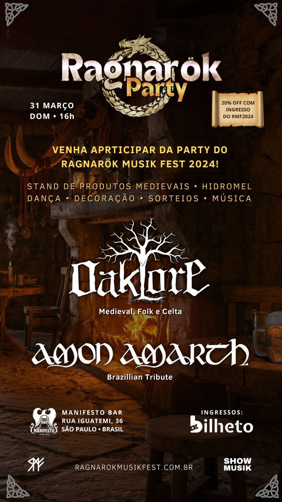 Com o Ragnarok Musik Fest chegando (o evento acontece no dia 18 de maio), a produção resolveu brindar o seu publico com uma festa pra aquecer nossos corações: o Ragnarok Party, neste domingo de Páscoa, a partir das 16h, no Manifesto Rock Bar.