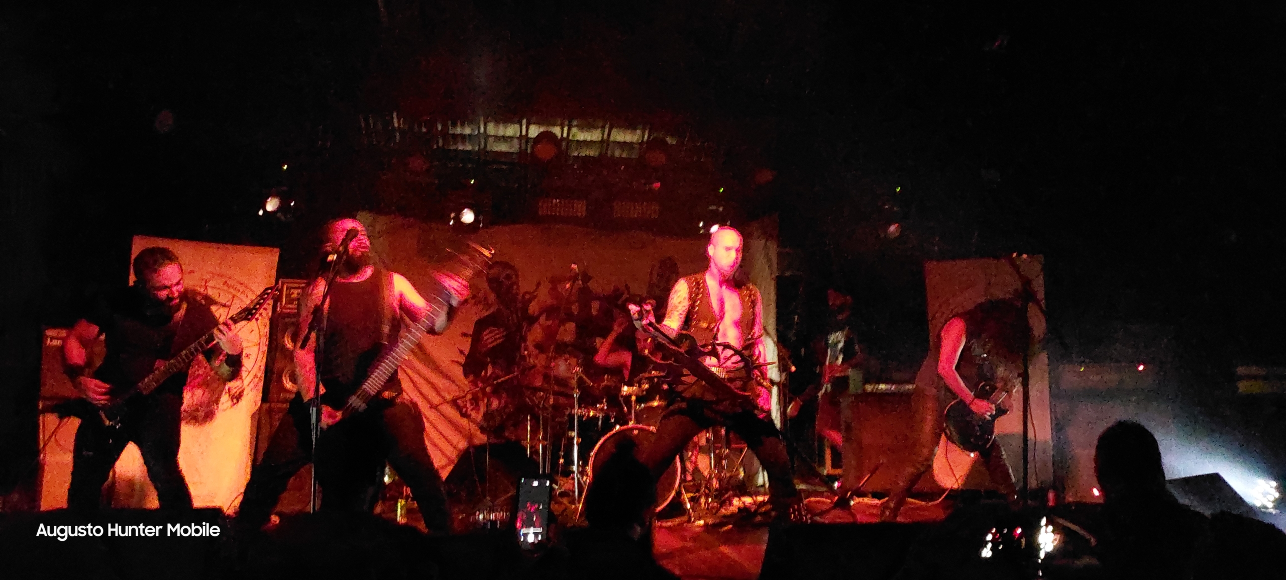 A partir daqui, os gigantes do Underground Carioca iriam tomar conta dos palcos, começando com a missa do 7Peles no Palco Mundo e com o seu Black Metal muito bem estruturado, a banda fez um show, como sempre, incrível! A banda, sempre muito competente em palco e com o seu visual renovado, até um certo momento, quando o vocalista saiu do palco e retornou como o Padre da Missa Negra no qual comandava, músicas de todos os “evangelhos” foram executadas naquele sábado e foi um show incrível, com um som maravilhoso e o show foi ótimo, mas foi exatamente aqui que tivemos o primeiro atraso do evento, já que o 7Peles atravessou um pouco o tempo de palco, atrapalhou a entrada da outra banda no Palco Sunset, mas isso não tirou o brilho do evento, que agora iria contar com uma apresentação ímpar.