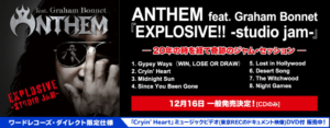 A parceria entre a mítica banda de heavy metal japonesa Anthem e o lendário cantor Graham Bonnet está na ativa mais uma vez. Bonnet já tinha colaborado com a banda participando do ótimo álbum “Heavy Metal Anthem”, lançado no ano de 2000. E é exatamente a amizade entra ambas as partes que possibilitou a realização de “Explosive!! – Studio Jam”, que une mais um vez talentos dos dois lados do meridiano.