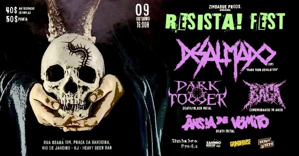 Domingo, depois de umas semanas, boas semanas de chuva e tempo cinza, o dia 09/10 amanheceu com um sol, prometendo que o domingo seria um dia claro, bem, ledo engano, já que pouco tempo depois, o céu do Rio de Janeiro voltou a ficar cinza, mas nada que nos impediria à comparecer ao Resista! Fest, que aconteceu no Heavy Beer, na clássica e Underground Rua Ceará, na Praça da Bandeira, local que sempre recebe o público mais Rocker e muito mais aqui no Rio de Janeiro.