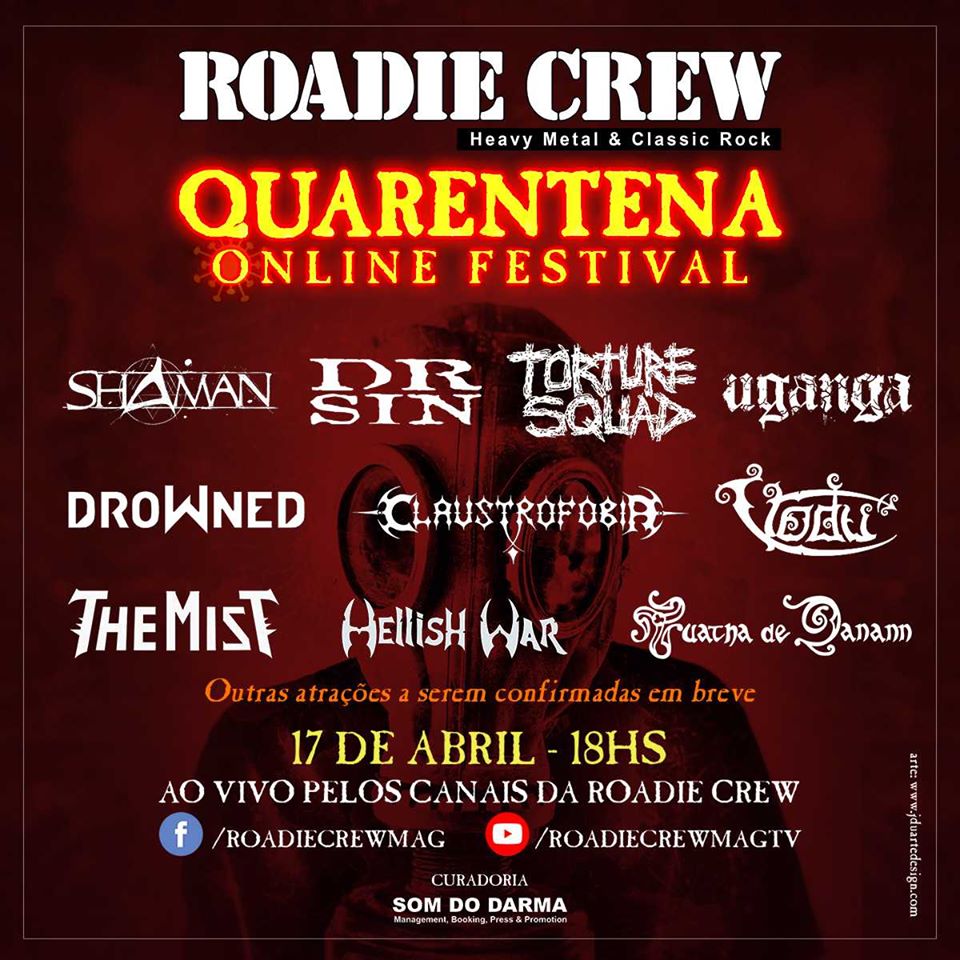 O evento chamado “Roadie Crew – Quarentena Online Festival”, irá trazer apresentações de 20 bandas nacionais, das quais já estão confirmadas Shaman, Dr. Sin, Torture Squad, Uganga, Claustrofobia, Tuatha de Dannan, The Mist, Vodu, Hellish War e Drowned. Cada uma irá apresentar um vídeo exclusivo e inédito.