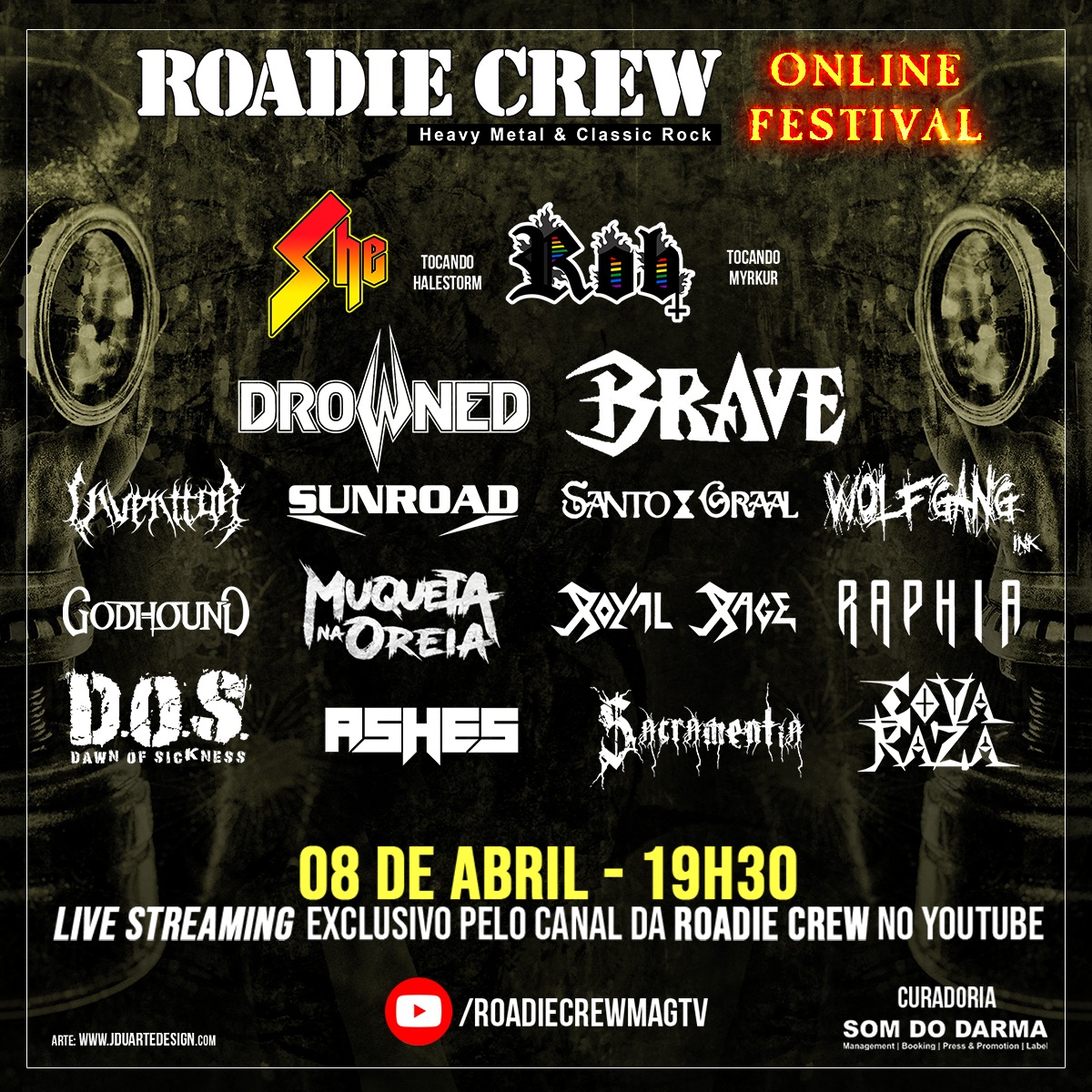 A revista Roadie Crew, em parceria com a produtora Som do Darma, apresentam nesta sexta-feira, dia 08 de Abril, às 19h30, a vigésima-quinta edição do “Roadie Crew – Online Festival“.