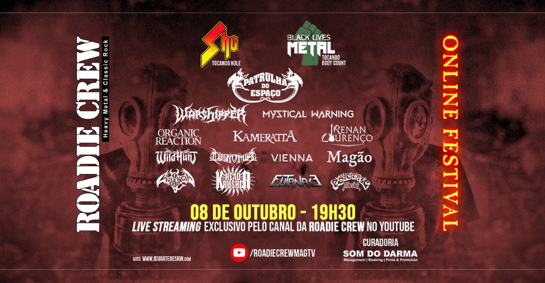 A revista Roadie Crew, em parceria com a produtora Som do Darma, apresentam nesta sexta-feira, dia 08 de Outubro, às 19h30, a décima-nona edição do “Roadie Crew – Online Festival”.