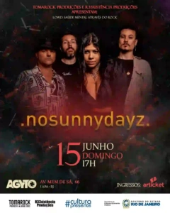 A segunda banda do evento são os, também, Cariocas do NoSunnyDayz, banda essa que vem conquistando diversos corações pelo Rio de Janeiro e também pelo Brasil. A banda que une um peso descomunal com alma e textura, melodia psicodelia, riffs densos e envolventes é mais uma que entra para o cast do evento para abrilhantar ainda mais a noite,