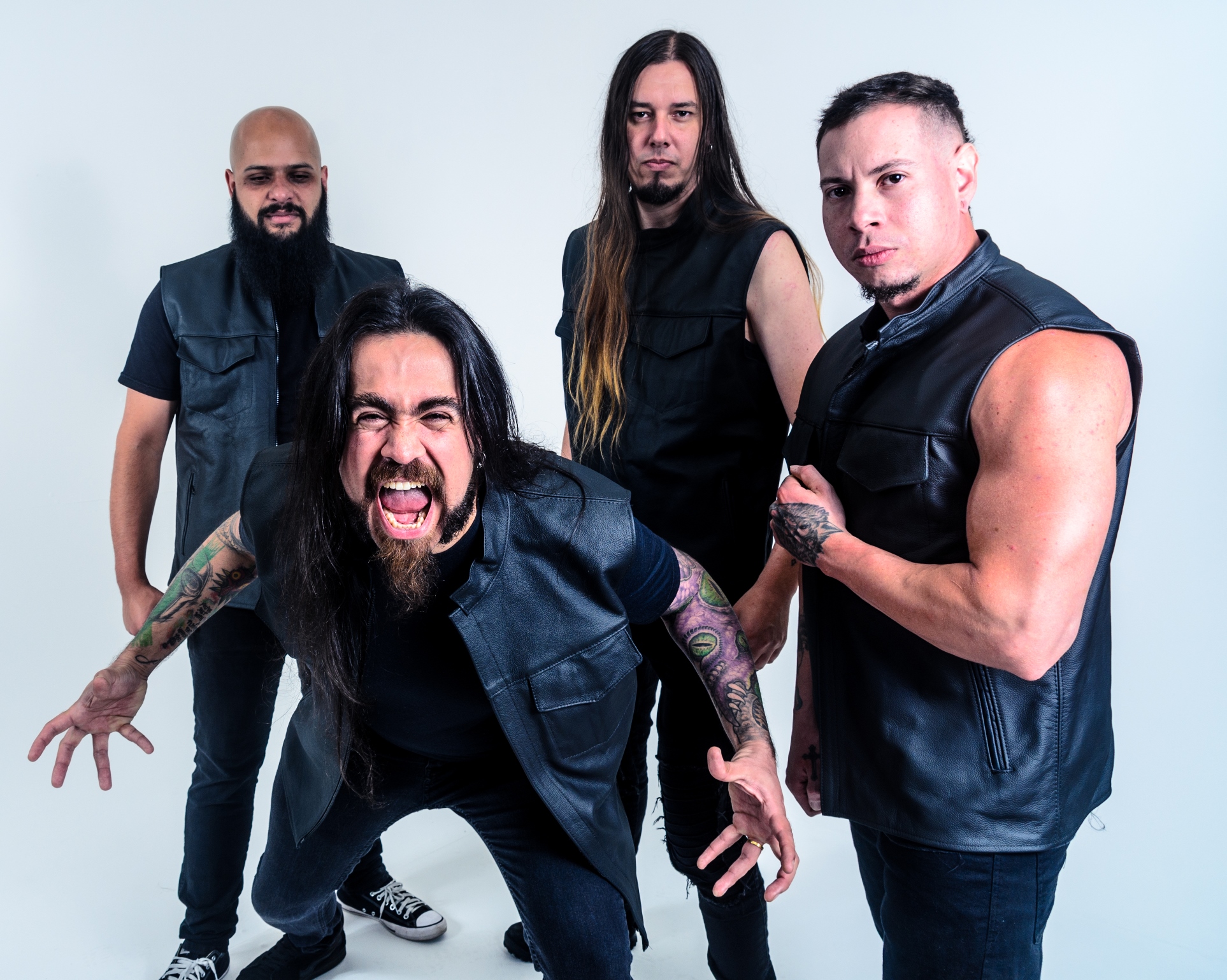 Dentre as faixas que farão parte de “Evolve”, algumas já foram lançadas em formato de single, vídeo clipe e lyric vídeo. “Bloodlust” (2019), “Khan” (2020) e “Eyes of Glass” (2020), mostram a capacidade do grupo em produzir Thrash Metal de qualidade, aliado à uma pegada moderna e inspirada. Sobre “Eyes of Glass” o guitarrista e vocalista Pedro Ferreira nos deu alguns detalhes sobre sua capa e temática em seu lançamento: “A arte não poderia deixar de representar os grandes ícones da manipulação via mídia brasileira. Eu detesto tomar partido político e não gosto de discutir religião, mas era impossível criar uma capa dessas sem celebridades do meio. Olhando para os anos 2000 e lembrando dos programas de domingo à tarde da TV aberta, é meio bizarro pensar que alguns chegaram até 2020 sem precisar de um psicólogo. Às vezes eu paro e penso que estamos mais conscientes e esclarecidos, mas essa é uma realidade de que poucos desfrutam. Quebrar os grilhões da “liberdade” é mais difícil do que parece, e infelizmente tem quem goste desse estado e vai lutar com unhas e dentes para permanecer nesse estado. Parece que o mito da caverna de Platão, não era mito.”