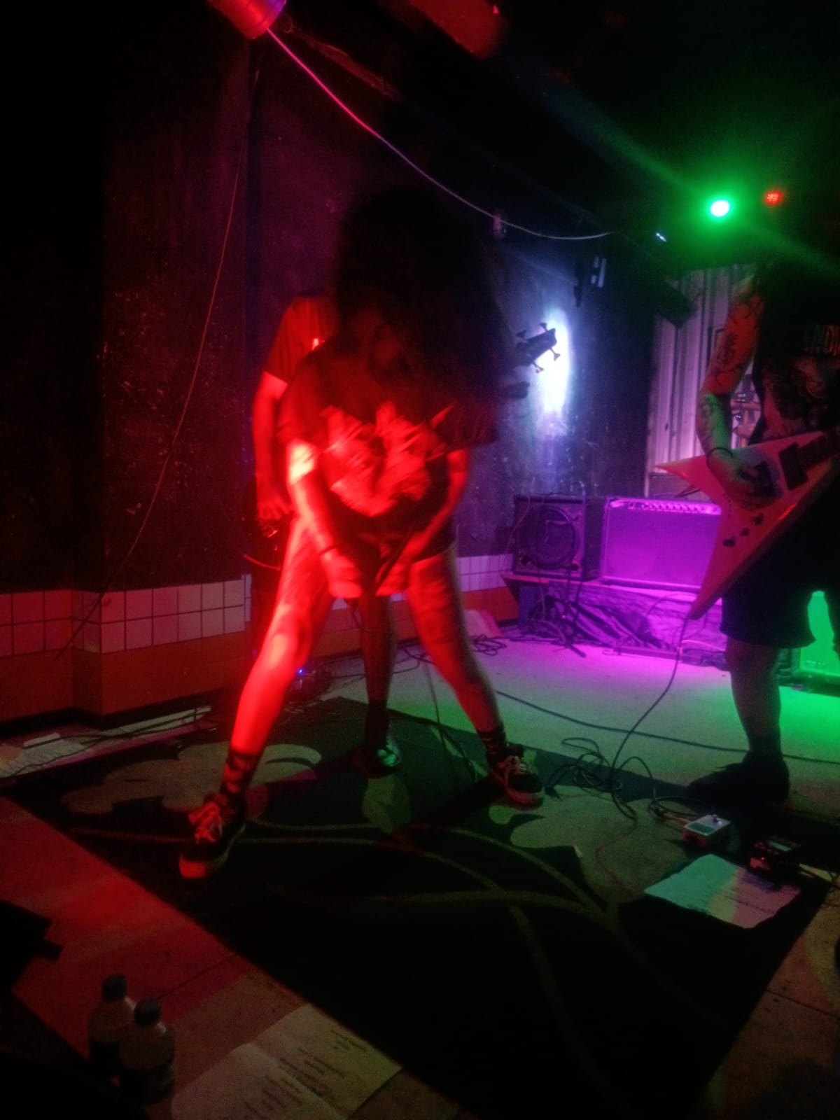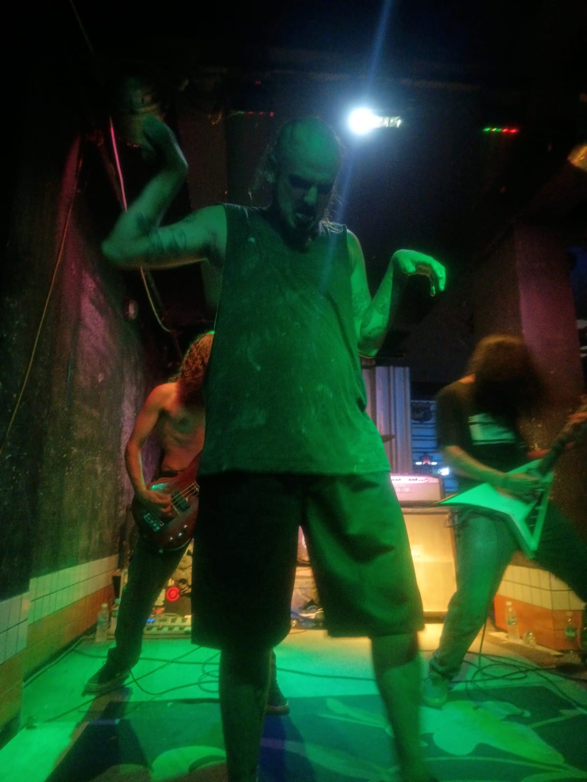 Dito isso, exatamente 21:00hr o Impietus, banda que está a dois anos já na correria e lançou um belo disco no ano passado, Demons, que mostra bem a proposta da banda em sua sonoridade e pude conferir que, mesmo com pouco tempo, eles estão aqui para garantir e provar que podem conquistar o seu espaço com a qualidade no qual eles mostram no disco. O show do Impietus foi ótimo, destaco a apresentação insana do vocalista Allan Caique que, em diversos momentos se jogava, dando uma força e um visual incrível para a apresentação da banda e a precisão da baterista Aline Bernardo, que faz o coração da banda ser ainda um ponto a ser reparado.