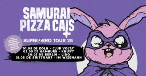 Samurai Pizza Cats chegará aos palcos ao vivo na Alemanha durante maio com quatro shows exclusivos com um toque muito especial para Hamburgo e Colônia: ambos os shows são as festas temáticas oficiais “Super Zero“, onde os convidados com uma fantasia de super-herói receberão um brinde especial. Os fãs podem esperar uma noite inesquecível, divertida e pesada.