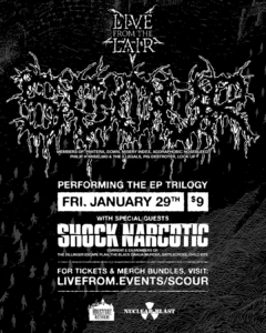 O evento com transmissão ao vivo e diversas câmeras acontecerá no dia 29 de janeiro no renomado Nodferatu’s Lair Studio do vocalista Phil Anselmo e encontrará a banda apresentando a trilogia de EPs! A transmissão ao vivo também terá a abertura de um dos artistas do selo Housecore – o conjunto de grind de Detroit, Shock Narcotic, que apresenta membros atuais e ex-membros do The Dillinger Escape Plan, The Black Dahlia Murder, Battlecross e Child Bite.