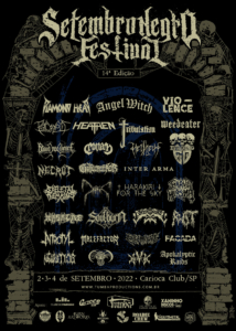 Como é bom ver o mundo voltando ao normal, depois desse tempo horroroso de isolamento, pandemia e perdas, infelizes e sempre doídas muitas perdas, mas, com a vacinação acontecendo no Mundo e, felizmente o Brasil está começando a ter a mesma segurança, por conta do (mesmo tardio), avanço da vacinação em nosso país, já estamos vendo alguns eventos sendo marcados, como o Over Metal Fest, que acontecerá no final desse ano. E agora, teremos o retorno de um dos mais clássicos festivais de Metal do país, o Setembro Negro, que em sua 14ª Edição contará com nomes de peso, como Diamond Head, AngelWitch, Vio-Lence, Harakiri For The Sky e muitas outras bandas, confira abaixo.