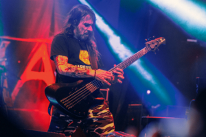 O público vai ao delírio (e eu ao chão, desde 2019 não tive coragem de ouvir nada que tivesse tido a voz de Andre Matos, nem com ele, nem com ninguém) nas primeiras notas de “Distant Thunder”. O coro é geral. Mas ainda é impossível não lembrar de quem estava presente na última vez que ouvimos essa música ao vivo no Armazém. No palco, tinha estado um dos maiores nomes do metal. As fotos na resenha linkada acima são do mesmo Rubens Rodrigues. As palavras eram minhas. Os olhos, dele. Quem está hoje não emula o maestro, tem sua própria personalidade e construiu a carreira por si mesmo, mas, hoje, nesse primeiro momento, a primeira música do “Shaman antigo” ainda faz suar mais os olhos que mexer os pés.