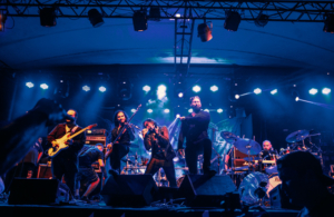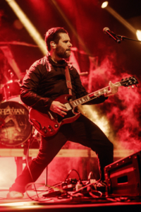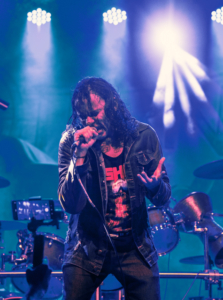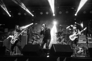 A produção foi rápida e eficiente na mudança de palco. E o agora quarteto formado por Thiago Bianchi (voz), Henrique Pucci (bateria), o gringo Mike Orlando (guitarra) e a fera de barba colorida Saulo Xakol (baixo) já subiram ao palco mandando ver com “Cosmic Redemption”. Só então Bianchi questionou o público: “Fortaleza, vocês tão por aí. O tempo é curto. Muita música pouca falação” e a banda continuou descendo a lenha, com Mike Orlando sentindo-se em casa em “Wake Up”, se jogando no sofá, puxando a mesinha de centro e largando os pés em cima, encadeando um solo em outro. E mais outro… E mais outro…