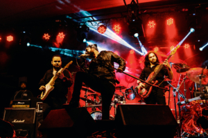 A OMMINOUS foi a representante cearense na abertura da noite. Com um som entre o Power e o progmetal, mostrou-se a banda ideal para representar os alencarinos no evento. Foi o primeiro show com a formação nova (George deixou a banda para se dedicar à advocacia, por exemplo). Passeando por músicas com solos fantásticos, o monstro Cesário Filho, filhote de Malmsteen, honrou o legado de Yago Sampaio. O guitarrista ainda não é o novo nome definitivo (por também ter outros compromissos). Tomara que fique. E aproveitem e lancem disco novo com esta formação que é completada por Sérgio Snider no baixo e Jan Ariel na bateria, além de Lenine Matos, o único da MK1 da OMMINOUS. E Lenine fez o que sabe muito bem fazer (e que a gente sabe que ele sabe, desde aquele show em Forquilha, agora num tempo já bem distante, com a Coldness). Com canções que facilmente se destacam, como “Prisoner of a Present Time”, que começou só com baixo e bateria, e a seguinte, Lenine afirma para o público que “só ficou bom porque vocês ajudaram”. Só humildade. Teria ficado bom mesmo que tivéssemos atrapalhado. O vocalista continua brincando ao se dirigir ao guitarrista convidado: “Toque só um pouquinho mais lento. Aqui é Omminous. Não é Malmsteen” . Cesário, “maluvido”, nem cogitou atender a recomendação e continuou shredando como se não ouvesse amanhã em “Master of Disguise”, parando apenas para que Ariel mostrasse também a sua técnica em um solo de bateria cheio de ritmo que acabou se transformando na inconfundível introdução de “Painkiller”, dos deuses do metal. E pra participar desse hino, a Omminous chamou Jerônimo Pires, vocalista da Ashes, que mandou agudos perfeitos. Mas, se Cesário já vinha deixando a galera com queixo no chão, teve gente que teve que ir procurar no fosso do Armazém com o solo com que iniciaram “I Wanna Rock” do Twisted Sister, que, ironicamente, pôs fim à gaiatice dos cearenses.