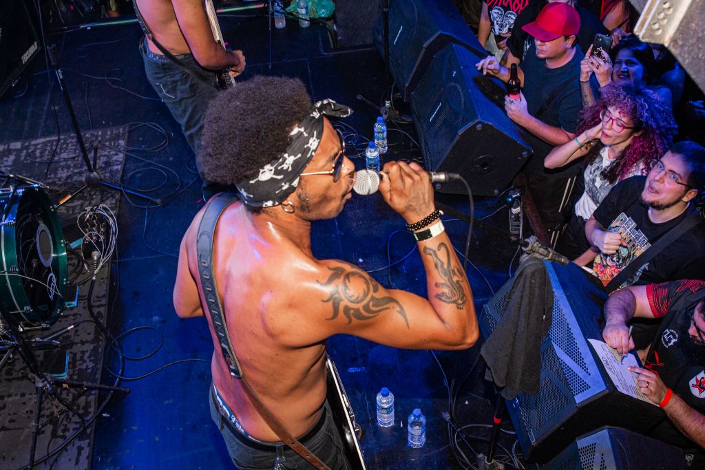 Logo depois desse showzaço, os donos do rolê, o Lowd, subiram ao palco com a formação super estruturada: Raphael Matheus (guitarra e vocal) e os irmãos Bruno Cabral (baixo) e Victor Cabral (bateria). Mostraram suas composições com força e segurança, entregando uma apresentação incrível. Com músicas muito calcadas em clássicos, mas cheias de personalidade, a Lowd mais uma vez mostrou que sabe do “riscado”, entregando peso e agressividade — sempre em sintonia com o tema principal do evento.