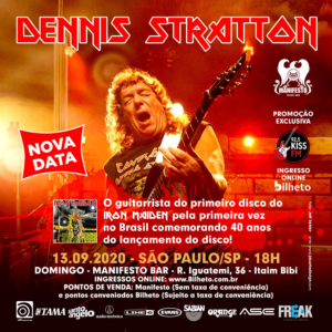 Devido à pandemia de Coronavírus, o guitarrista Dennis Stratton, que se apresentaria pela primeira vez em São Paulo em 5 de abril no Manifesto Bar, teve o show adiado para o dia 13 de setembro. Os shows em outras cidades também devem ser adiados.
