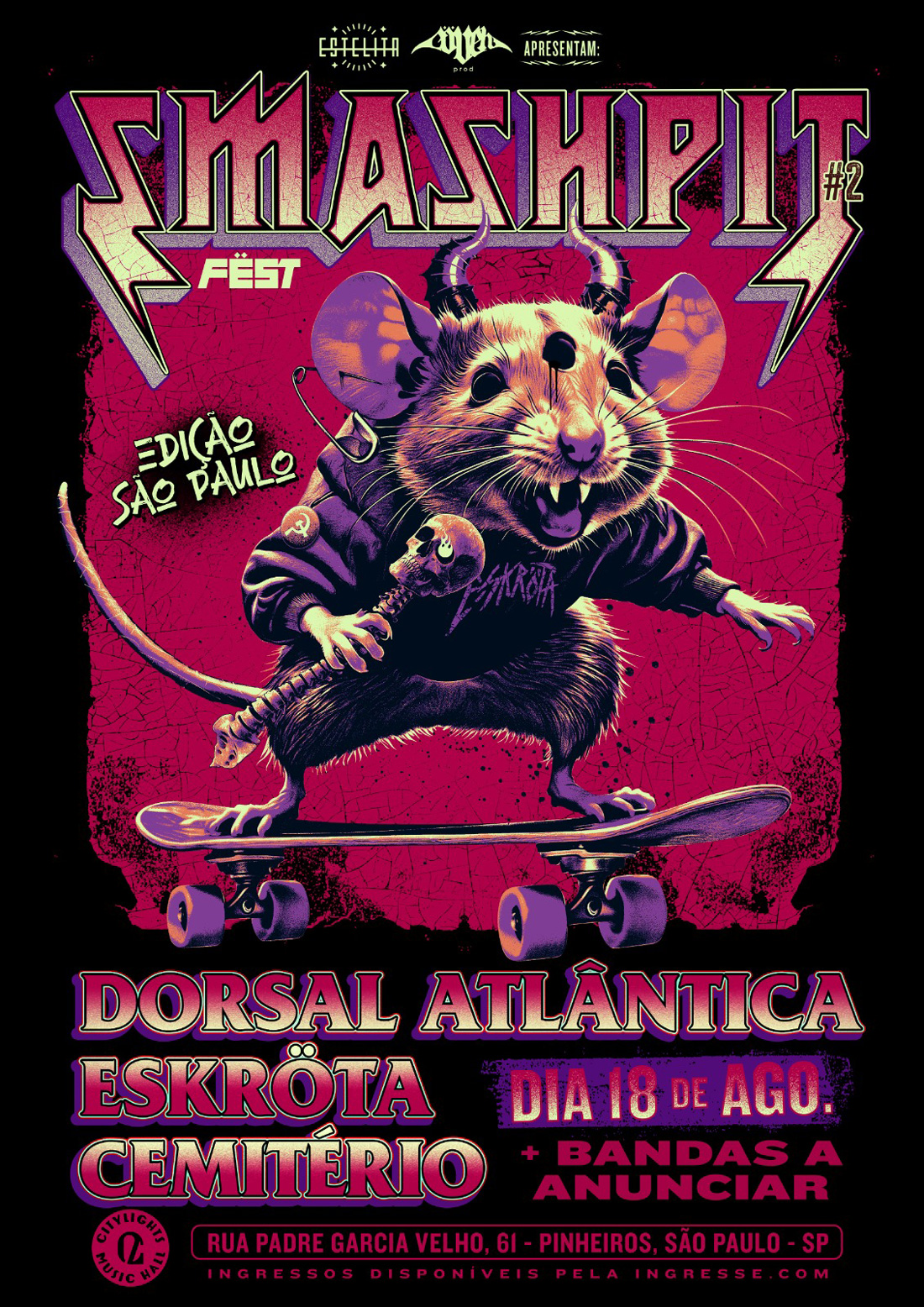 O Dorsal Atlântica, que atualmente conta com o fundador Carlos Lopes (vocal e guitarra), Alexandre Castellan (baixo e backing vocal) e Braulio Drumond (bateria), é um dos destaques da segunda edição Smashpit Fëst em São Paulo, que ocorre em 18 de agosto (domingo) no City Lights Music Hall. “Ano passado trouxemos o Mukeka Di Rato (ES) e o D.F.C (DF) e esse ano estamos trazendo o Dorsal como headliner em sua única apresentação em São Paulo neste ano, além do Ratos de Porão como headliner em Campinas (sábado, 17 de agosto)“, revelou Yasmin Amaral, idealizadora do evento e integrante da Eskröta, que também é uma das atrações do festival. “O Smashpit Fëst, feito em parceria com o produtor recifense João Soares, nasceu do sonho de ter um festival que fosse a minha cara, para poder dar stage dive em paz, entrar no mosh tranquila e ainda tocar com bandas que admiro“, acrescentou.