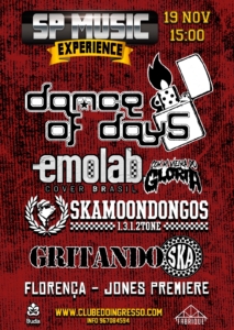 Dance of Days, Emolab Cover Brasil (com Mi Viera, do Glória), Skamoondongos, Gritando Ska, Florença e Jones Premiere são as atrações