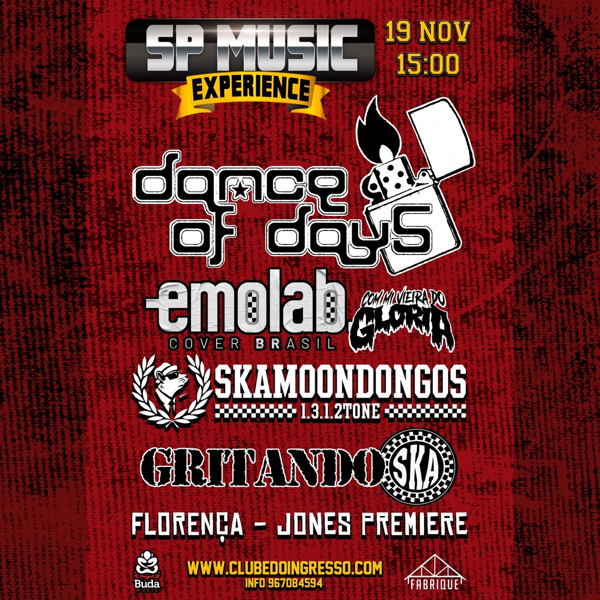 Dance of Days, Emolab Cover Brasil (com Mi Viera, do Glória), Skamoondongos, Gritando Ska, Florença e Jones Premiere são as atrações
