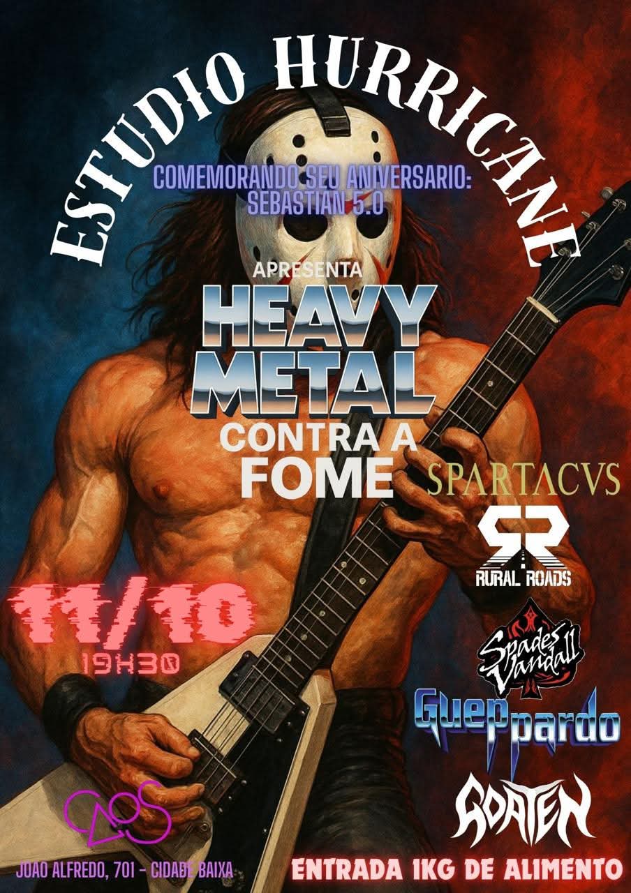 O show faz parte da comemoração de 50 anos de Sebastian Carsin, produtor responsável por assinar diversas obras históricas do Metal gaúcho. Além do Spartacus, o line-up contará com Rural Roads, Spades Vandall, Gueppardo e Goaten. A entrada será solidária, mediante a doação de 1 kg de alimento, que será revertido para ações de combate à fome.