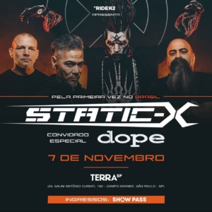 Em novembro, as bandas Static-X e Dope se apresentarão pela primeira vez no Brasil. O show único será no dia 07 de novembro (quinta-feira) no Terra SP, em São Paulo. Os ingressos estão à venda pelo site ShowPass.