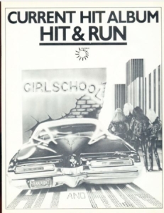 “Hit and Run” é o segundo álbum de estúdio da banda britânica de heavy metal Girlschool, lançado em 20 de abril de 1981, via gravadora Bronze Records. Ele foi gravado no Jackson’s Studios, Inglaterra, entre dezembro de 1980 a Janeiro de 1981, com produção de Vic Maile. O famoso carro na capa é um Buick Riviera de 1972.