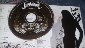 “Legacy” foi lançado no Brasil via o selo Hellion Records e minha cópia foi comprada Na própria loja da Hellion em junho de 2010, mas o que realmente orna esse CD muito especial para minha coleção, é que foi ele que eu levei para ganhar uns rabiscos da banda. No dia 3 de junho de 2013 as moças do Girlschool estiveram presentes na loja London Calling para uma tarde de autógrafos. Nesse evento tive a oportunidade de conversar com as super simpáticas e bem humoradas Kim McAuliffe, Jackie Chambers, Enid Williams e Denise Dufort e obviamente o momento foi registrado com algumas fotos. Todas se recusavam a acreditar que eu não era um fã europeu perdido pela velha Sampa.