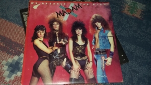 No Brasil o Madam X teve uma modesta exibição televisiva com o clipe de “High in High School” no programa Super Special da TV Bandeirantes-SP em meados de 1985. Isso por que o LP “We Reserve the Right” foi lançado fazendo parte do pacote da gravadora CBS intitulado ‘Heavy Metal Heart’ ao lado de nomes como Victory, Accept, Ozzy Osbourne e Y&T. “We Reserve the Right” em edição nacional saiu com encarte interno envelopado com letras das músicas e informações pertinentes. Minha cópia eu ganhei em uma promoção via carta que a 97FM de Santo André-SP realizou em maio de 1986. O LP veio com um carimbo da CBS indicando que se tratava de um produto ‘invendável’.